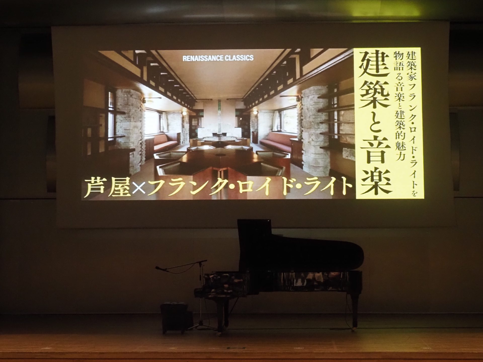 2月22日(水)に、芦屋市にある文化施設「ルネサンス クラシックス芦屋ルナ・ホール」にて『芦屋×フランク・ロイド・ライト “建築と音楽”』と題した文化イベントが開催され、当館の維持保全に長く携わってくださっている神戸大学の足立裕司名誉教授と兵庫県立大学の水上優教授が講演されました。
