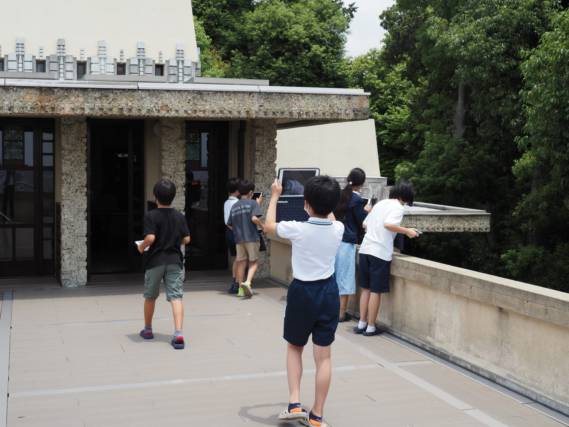今年の5年生にも、ライトの建築スタイルやデザインに感動してもらえたようで、その後、学校より貸与されている「タブレット」で気に入ったデザインやスポットの写真をたくさん撮ってもらうことができました。