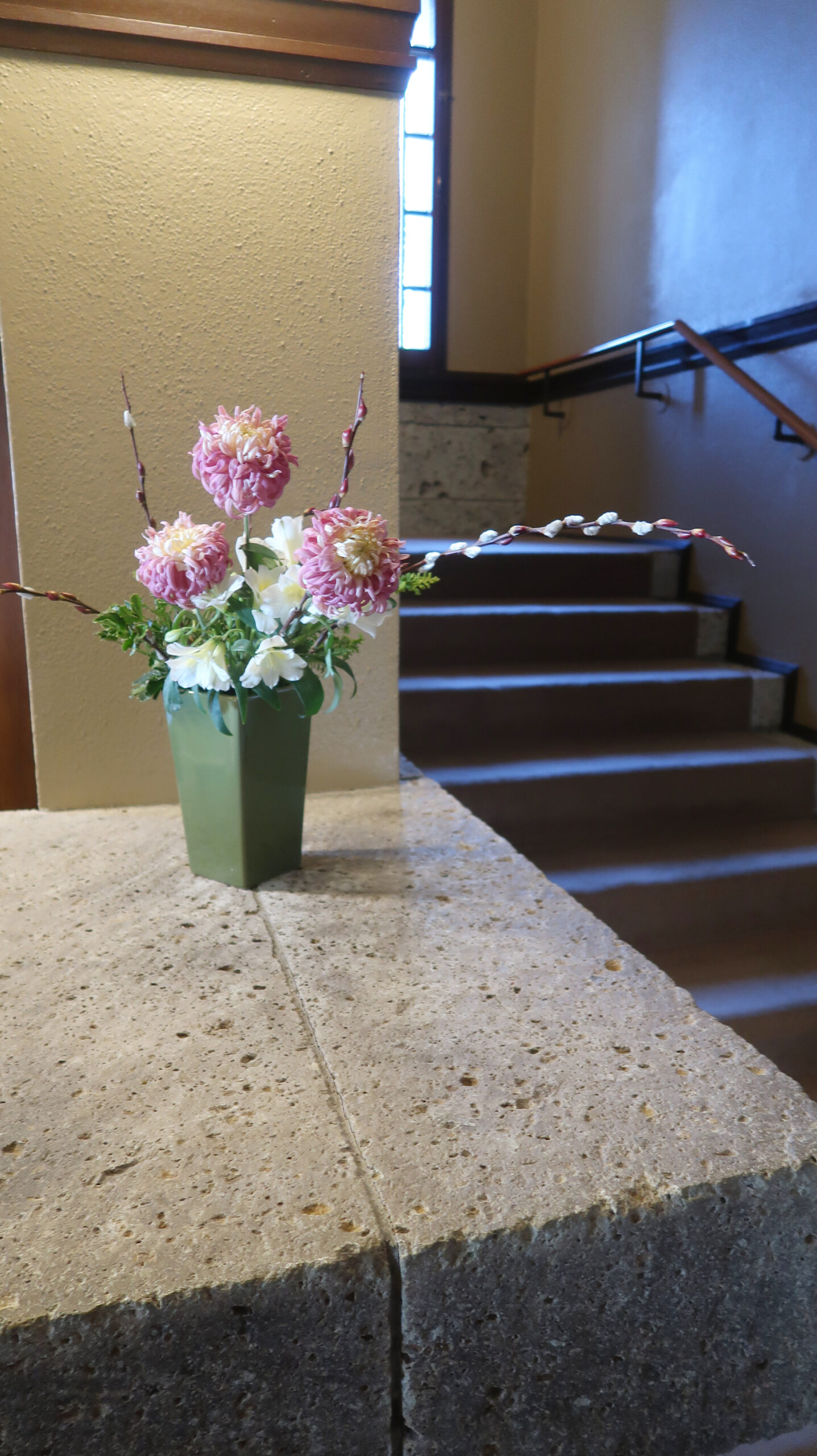 【ブログ】生け込みのご紹介By yodokogeihinkan / 2026年1月14日 今年最初の生け込みは、新春の趣を感じさせる華やかなお花で館内を彩りました。美しい建物に彩りを添えるお花たちが、清々しい雰囲気を演出しています。 今年も季節ごとにお花を飾り、皆さまをお迎えいたします。ぜひ足をお運びください。 1階受付菊、アリストロメリア、ポリシャス、赤目柳 2階段踊り場ロウバイ、ストレチア、シンビジューム、宿根スイトピー、アカシア 2階応接室バンダ、アンスリウムの葉 3階和室ラナンキュラス、ユーカリ 4階食堂菊、桐、ドラセナ、雪柳