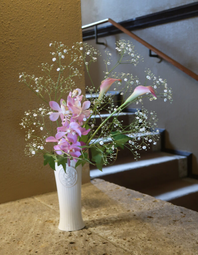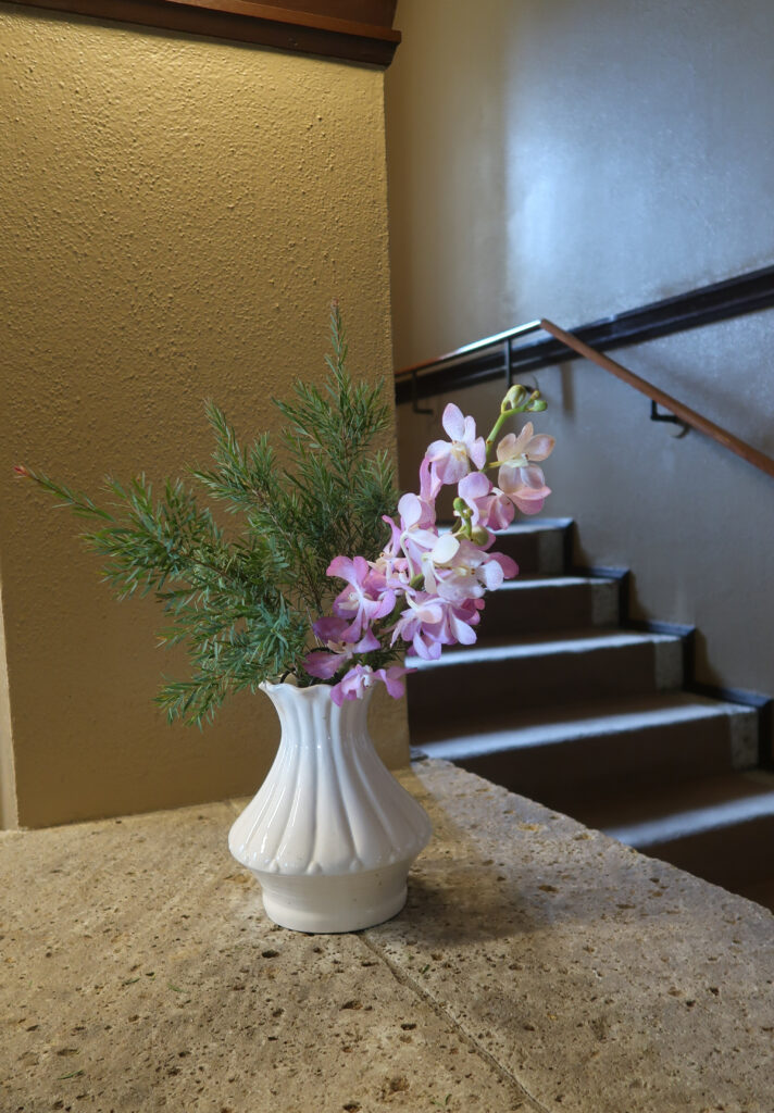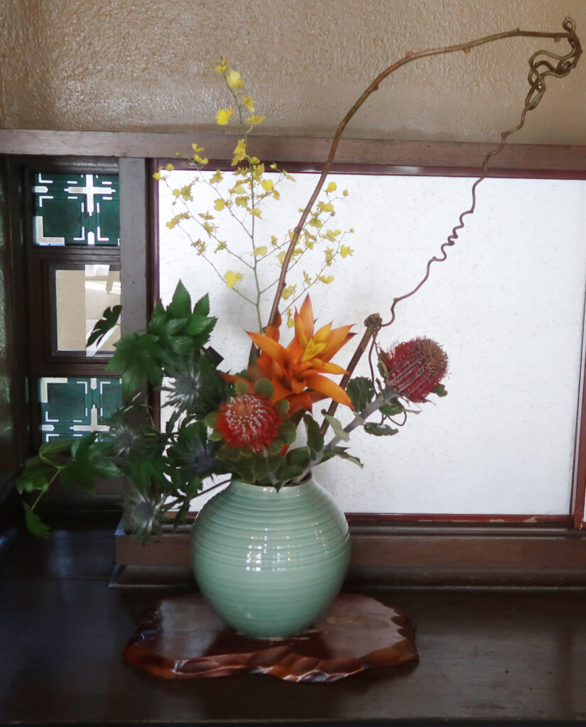 季節に合わせて館内の生け込みを新しくしました。今月も、館内の雰囲気に調和するようモダンに生けたお花をお楽しみいただけます。 皆様のご来館をお待ちしております。
