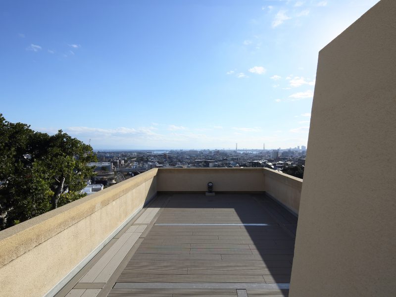 正面南側の出入り口にはバルコニーがあり、芦屋市街はもちろん大阪湾さえ眺望できます。