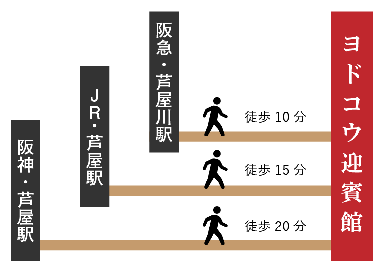 JR「芦屋駅」、阪神「芦屋駅」からは阪急バスもございます。