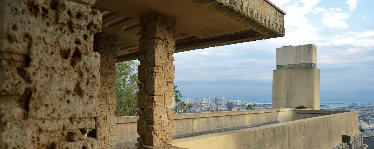帝国ホテルの設計に携わっていた頃のライトの作品は、シカゴ周辺の地域からロサンゼルスを中心とした西海岸のカリフォルニア地域に集中している。それまでの草原地帯から砂漠地帯へと気候風土の異なる地域での仕事へと変化していたのである。シカゴ周辺でライトが完成させたプレーリーハウス(草原住宅)(※3)の造形的特徴は水平線の強調であり、それはシカゴ周辺に広がる草原の風景を現したものだ。ライトは、水平線を取り入れることにより建築と自然との融合・調和を図ったのである。同時に、内外の空間の連続性、建築と家具のデザインの統一性をも目指していった。