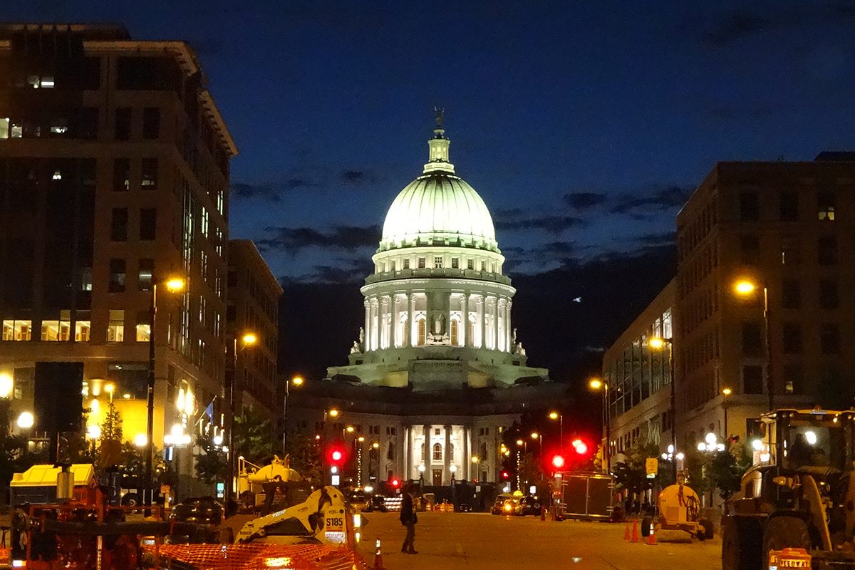 途中にはウィスコンシン州会議事堂があり、ライトアップされて大変きれいでした。