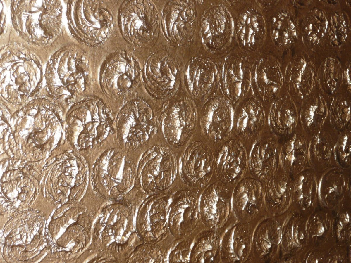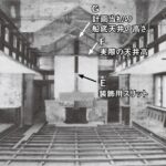 山邑邸が完成した大正時代には、西洋館の内壁、天井の仕上げは漆喰塗りか壁紙張りくらいでした。ライトと親交があり、日本の住宅建築のパイオニアである武田五一(※5)も、芝川家住宅(※6)(現在は明治村に移築、明治45年建設)では土壁や色土壁を試みていたようです。明治村に芝川家住宅が移築された際に復原された玄関ホールの金色の真鍮粉塗りは昭和期の増築の際に改装されたものですので、明治末から大正期にかけて漆喰塗りに代わる新しい素材が求められていたと考えられます。また、少し後の昭和戦前期になると、先に触れたようにモダニズムの影響も現れ始めます。