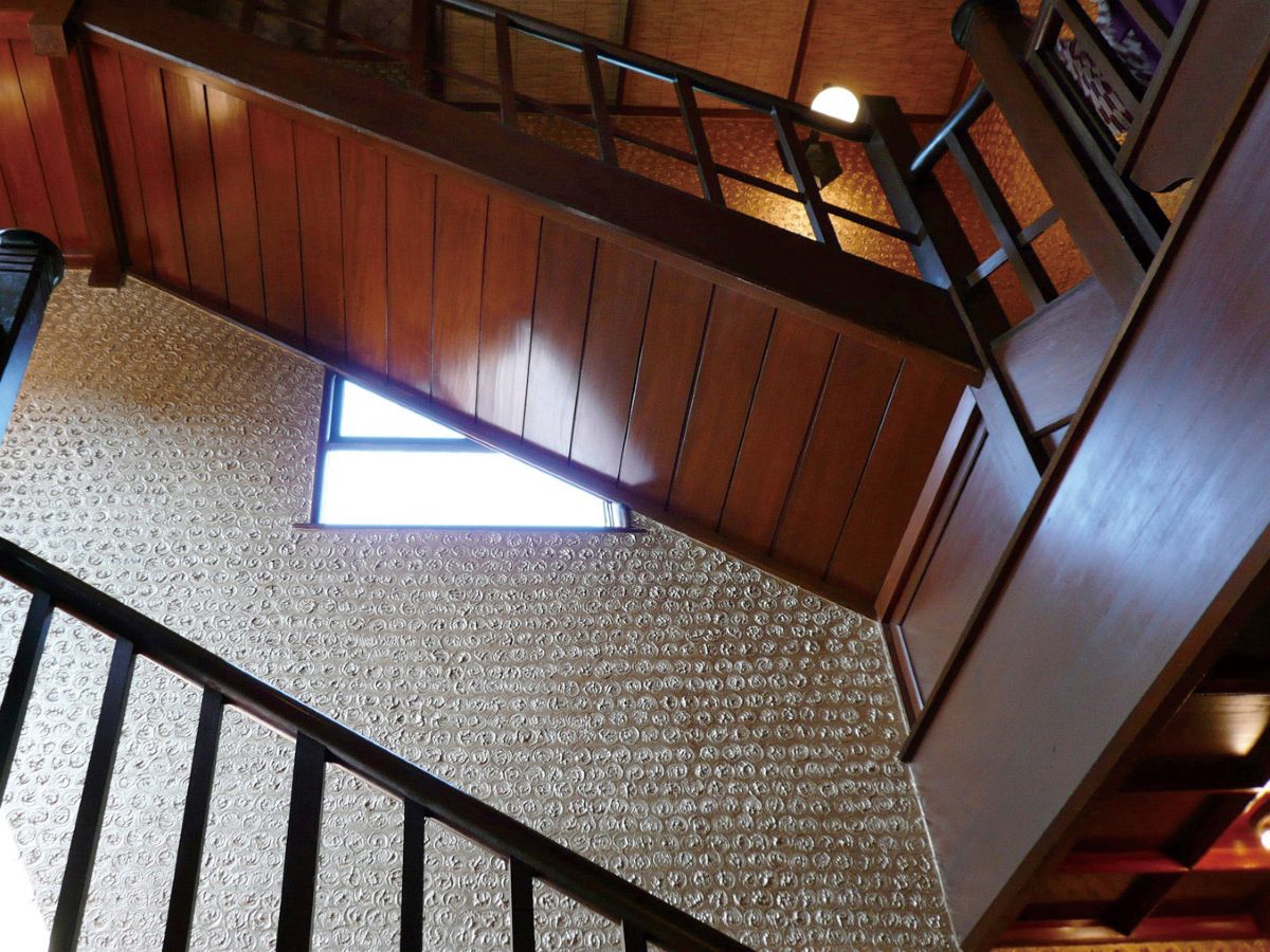 私は、これまでこの山邑邸に「垂直方向への空間展開」というライトの新境地が見いだせるのではないかと指摘してきましたが、このペンキという素材の選択についても歴史的な転機としての評価ができるのではないかと考えています。