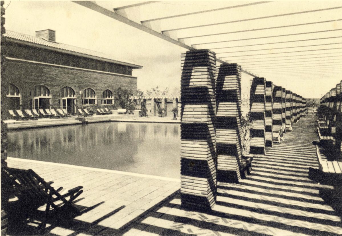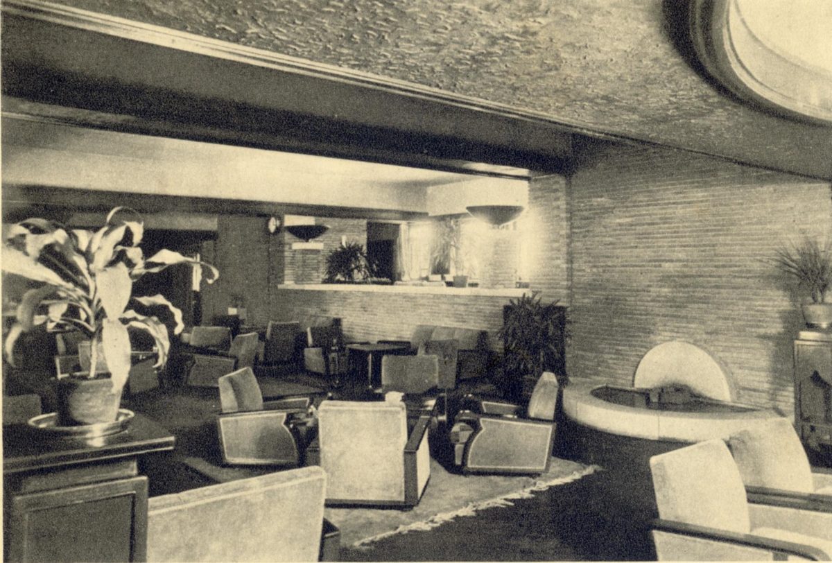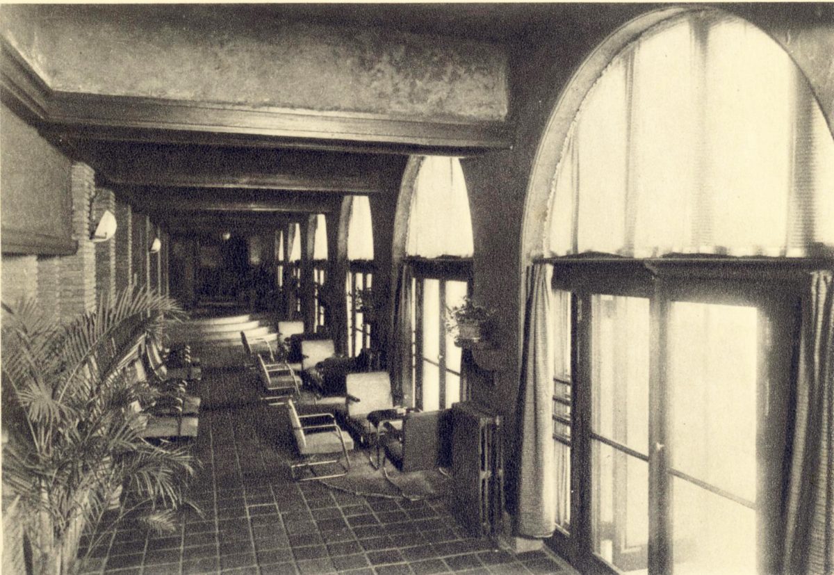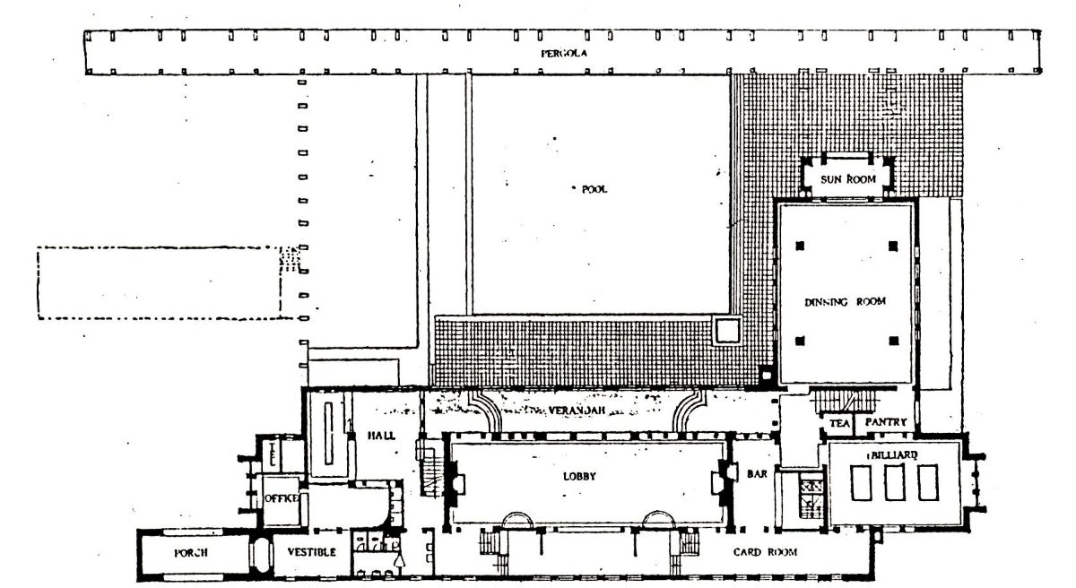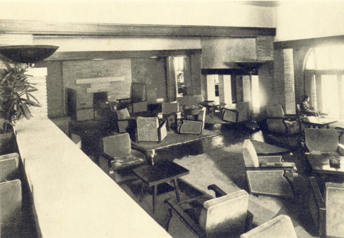 新京の帝国ホテルとも呼ばれた満州中央銀行倶楽部(1935年)は、甲子園ホテルの計画をさらに発展させたものと考えられる緩やかな南下がりの敷地を生かした東西に長く一直線に伸び、西の角で短く南側に折れたL字形の平面の2階建ての建物であった。