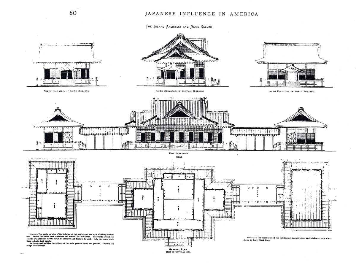日本館鳳凰殿が設計者をはじめ、日本の職人が現地に赴いて建設されたのです。ライトは交通館の工事監理をしながら、日本館が建設されていく経緯を、具(つぶさ)に観察する機会を得たのです。(写真1・図面)もっとも、フランスはパリで起こった「ジャポニスム」は、この頃大西洋回りでアメリカに上陸。日本ブームは日を追って隆盛していったのと重なるわけですが。