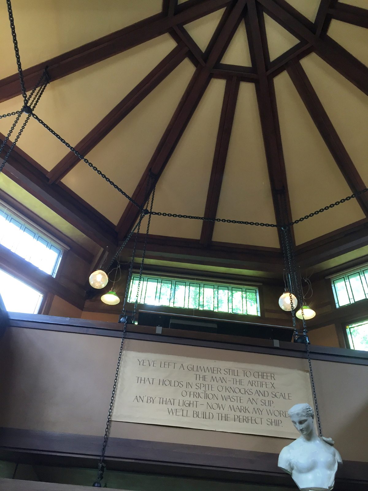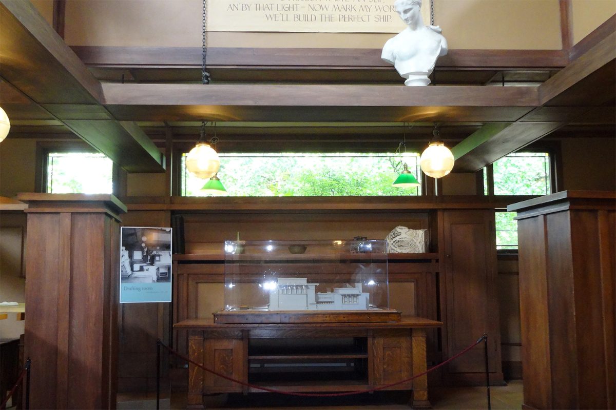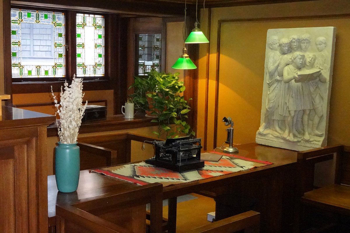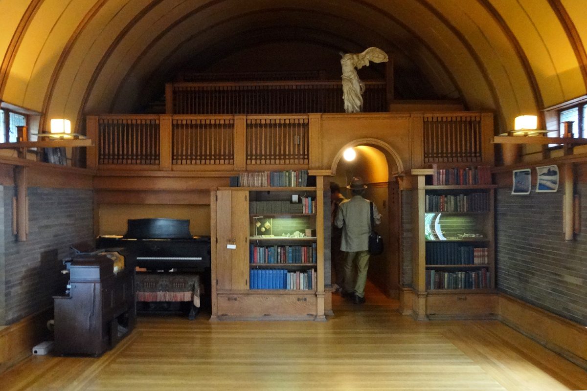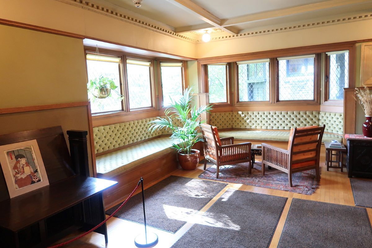 今までのライトのイメージとはかなり異なるデザインの建物でしたが、ライトの初期の建築に触れることができて、大変興味深く貴重な見学となりました。また、ガイドさんがライトの逸話を交えながらユーモアあふれる解説をしてくださって、大変楽しい時間を過ごすことができました。