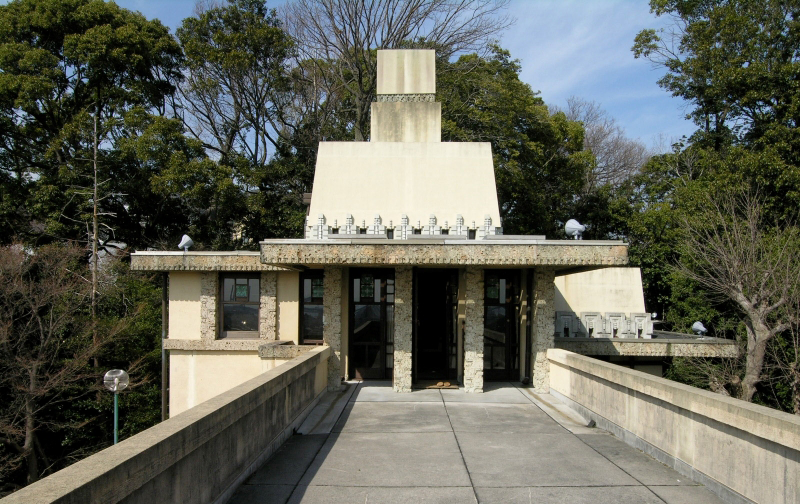 1924年。このころライトは日本とカリフォルニアで新たな課題に直面していました。つづら折りの坂、丘、急峻な崖、すばらしい眺望。いずれの敷地も、中西部の大平原で仕事してきた彼にとって、新鮮な挑戦であったに違いありません。それに応じようとするライトの絶えざる工夫の跡が、この作品にしっかりと刻み込まれました。だからこそ、この作品が、決して切り離し得ない芦屋の丘の一部として結晶したのです。