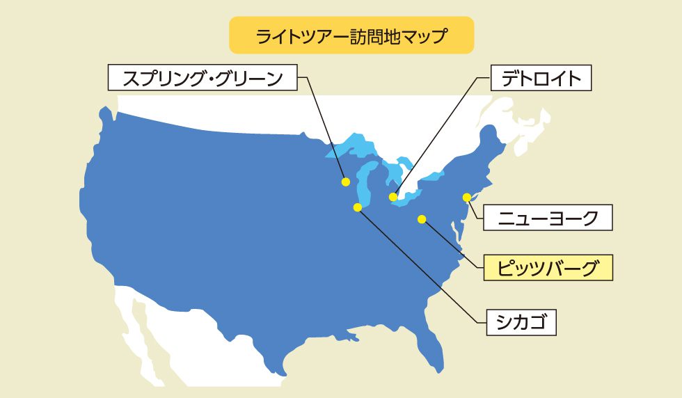 私は昨年8月、ヨドコウ迎賓館の設計者ライトが、母国アメリカに遺した作品を訪ねるツアーに参加しました。その体験を皆様方にシリーズでご報告いたしますので、お楽しみください。