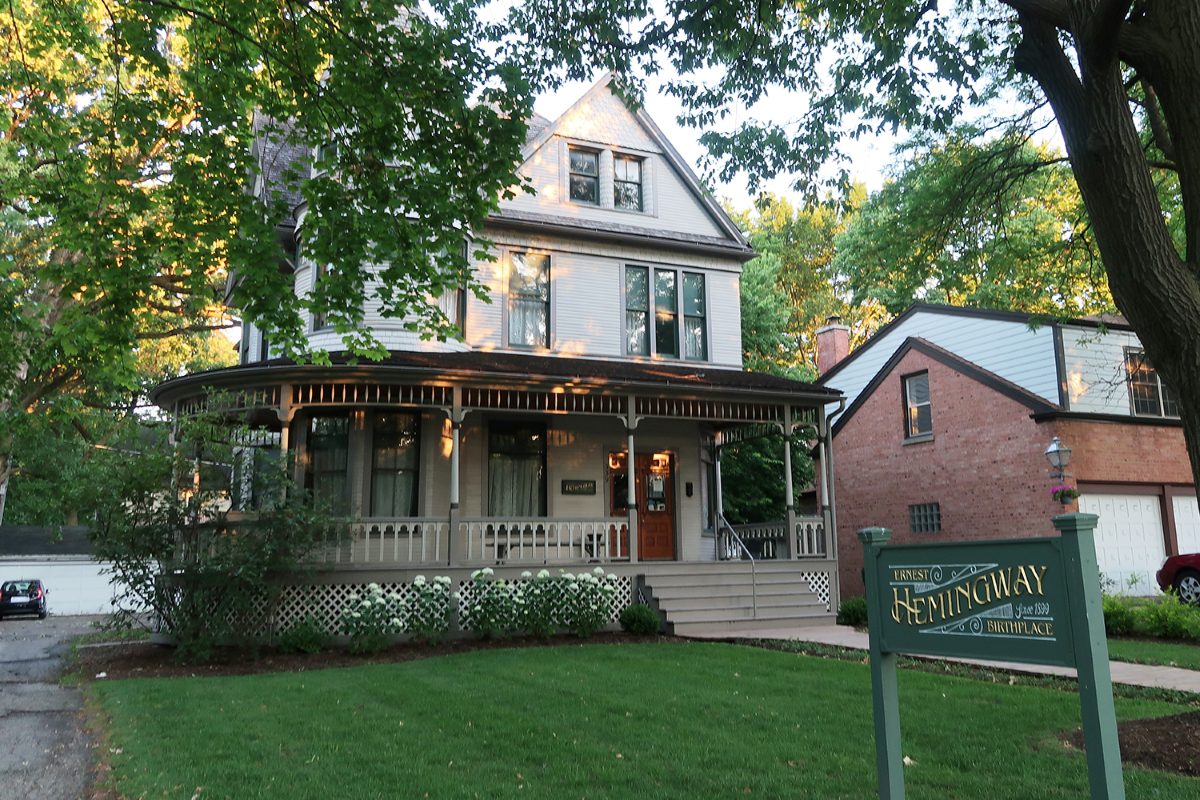それから、ライトの設計ではありませんが、ホテルの近くにノーベル賞作家のアーネスト・M・ヘミングウェイの生家がありました。オークパークの出身だったのですね。