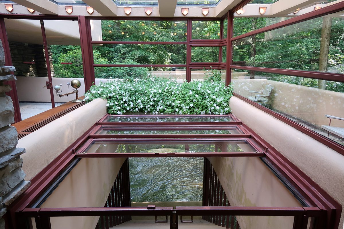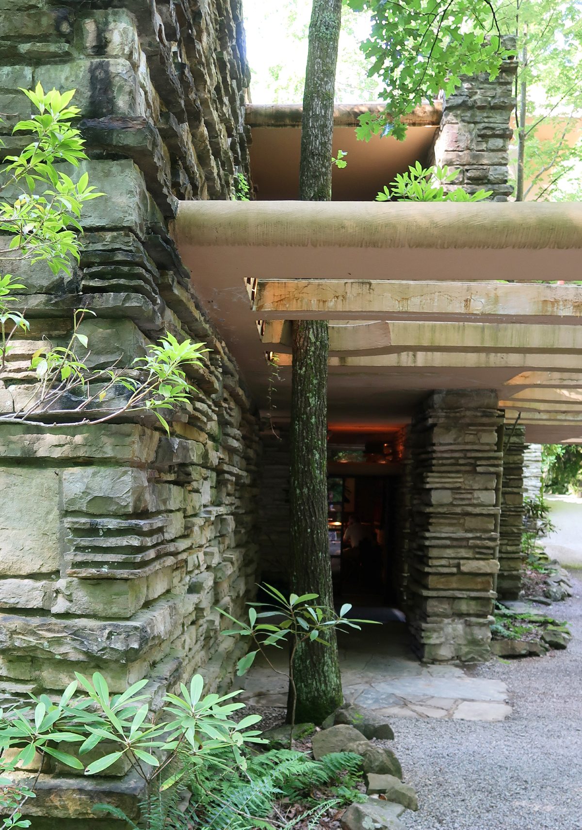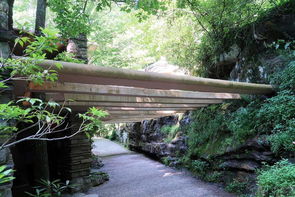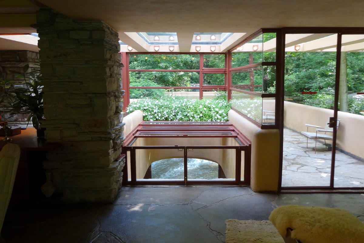 有名な話ですが、施主のカウフマン一家が、この家を建てる前にこの岩の上で遊んでいたそうで、ライトはそれをそのまま生かしてこの家を設計しました。