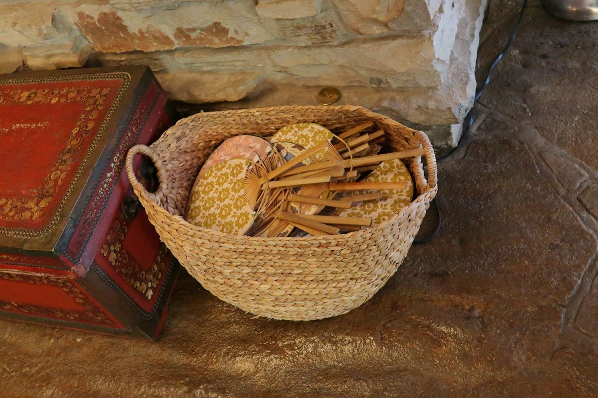 なぜかリビングの隅には見学者用と思われる「うちわ」が置いてありました。このようなものも含め、この家でも東洋的な装飾品が多く飾られていました。