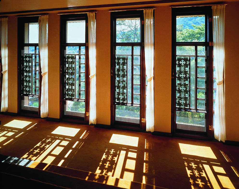 堅牢なRC造の迎賓館もやはり老朽化による破損から免れることはできず、昭和60年から3年をかけて抜本的な修復が行われました。しかし平成7年1月17日、阪神淡路大震災によってライトの貴重な建物も被害を受けました。