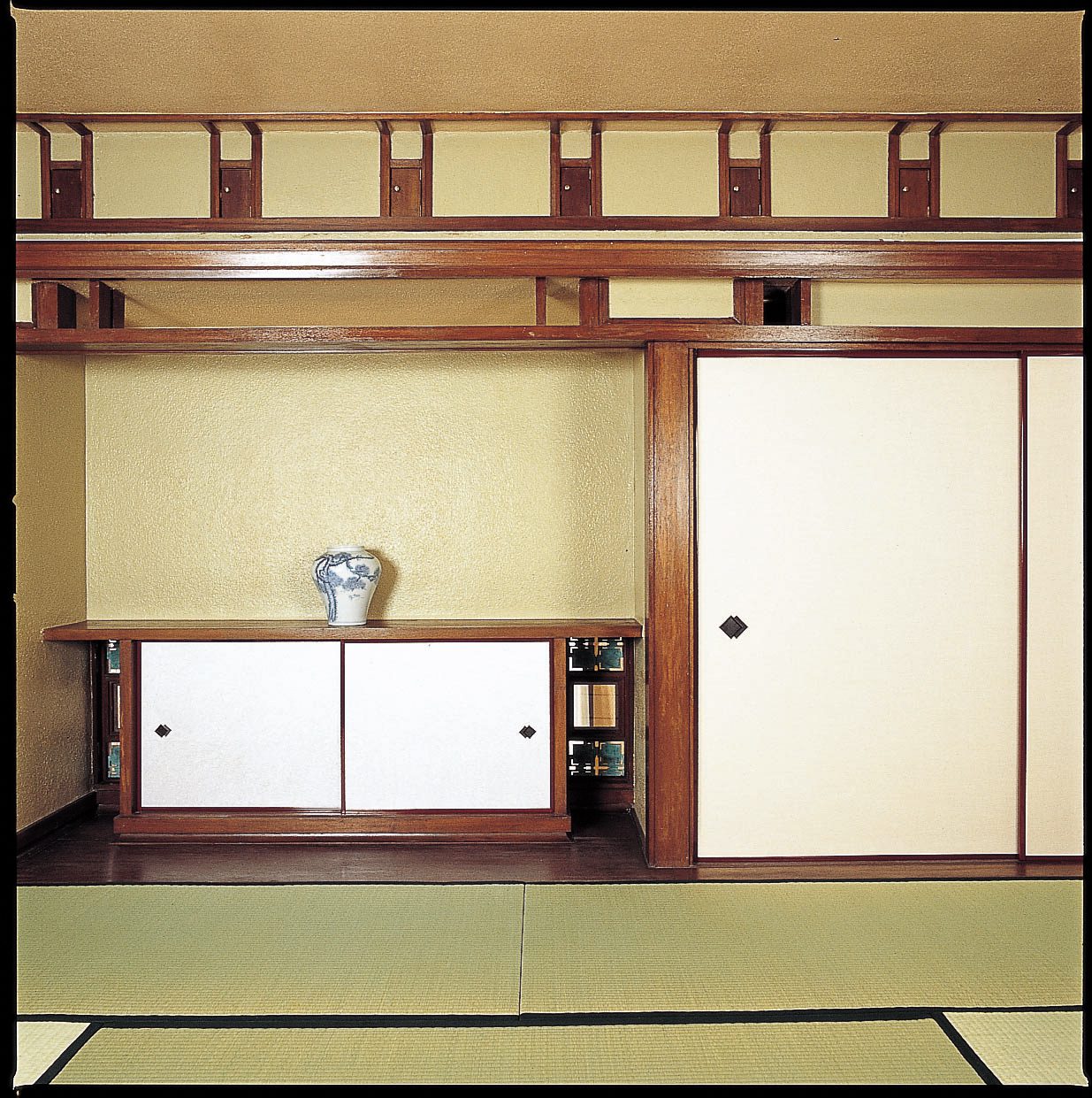 ヨドコウ迎賓館を設計したライトは、日本の建築や美術から多くのヒントを得たといわれています。外観からは洋風そのもののように思える館内にも、和の趣向を感じさせる箇所がいくつかあります。そのなかから、平成7年より3年余にわたる震災修復工事を通して、新たに発見された事例をクローズアップ。果たしてライトのオリジナルなのか?読者の皆様と一緒に想像したり、謎解きを楽しんでみたいと思います。