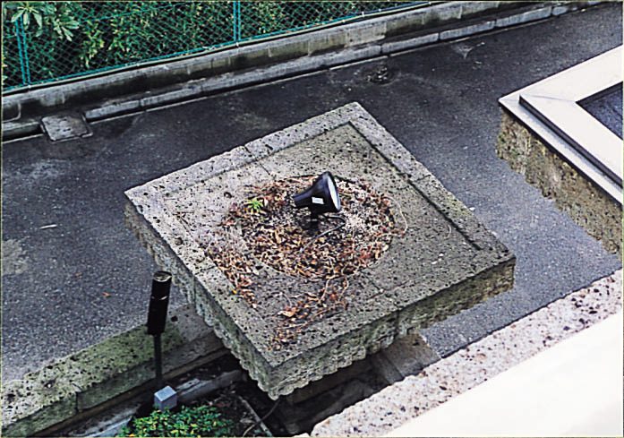 いまガーデニングが大流行。庭やベランダで花などを育てていらっしゃる方も多いのではないでしょうか。実は、ヨドコウ迎賓館にも、ガーデニングに関連の深いスポットがあるのです。ひとつは、玄関東側面にあるフラワーポットの跡。このフラワーポット、塀の上にのせてあるので、ちょっと見たところ花壇とは思えないのですが、4階のバルコニーから見おろすと、なるほど納得。石囲いの中に、土が入れてあるのがわかります(写真・照明部)。まさに空中花壇といったイメージで、お客様への趣向をこらしたおもてなしが偲ばれます。また、バルコニー内にもプランターの跡が残っており、ガーデンパーティーを開きながら、季節の花を楽しんでいた風情がうかがえます。