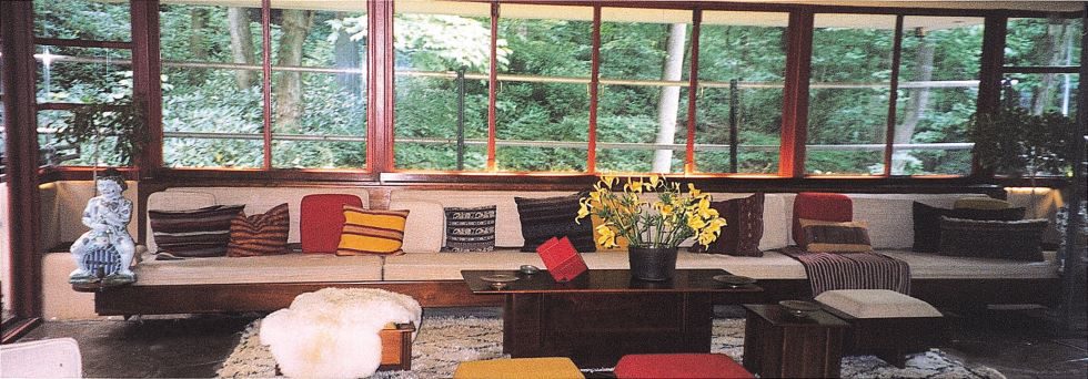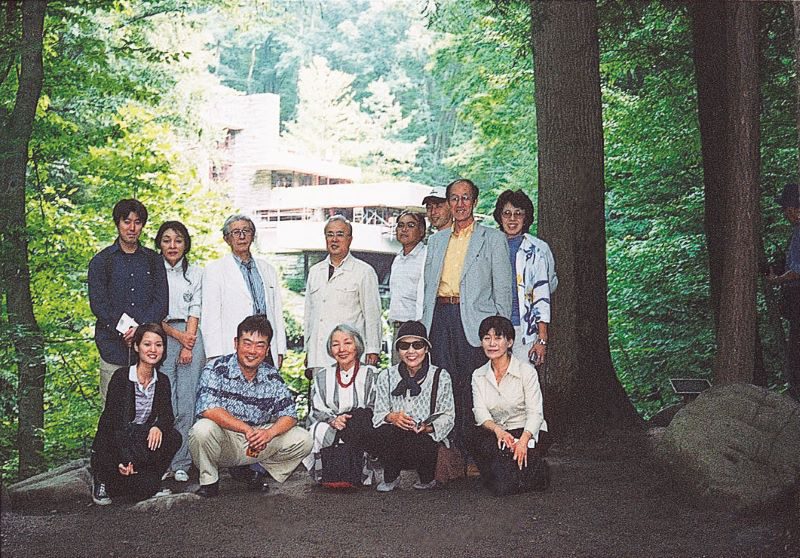 第一回目の今号は、ライトの最高傑作とされる『落水荘』をご紹介します。『落水荘』はアメリカ東部ペンシルバニア州のベア・ランという渓谷にあります。私たち一行は、近隣の都市ピッツバーグからバスで約2時間、歩いて渓谷を分け入り、対面の瞬間を心待ちにしました。やがて木立の中に『落水荘』が出現。積年の想いが叶い、涙した人もいると聞いていましたが、その姿は自然の一部のように美しくダイナミックで、本当に感動的でした。