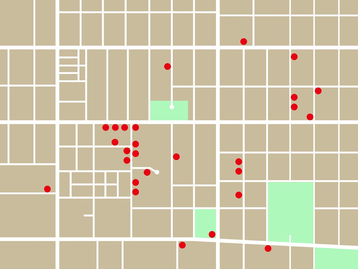 今回巡った作品以外も含めて、オーク・パークにあるライトの作品を地図にまとめてみました。徒歩ですべてを見るには2~3時間かかりそうです。また、”ライト風”の建物も多く、探すのに少し苦労しました。