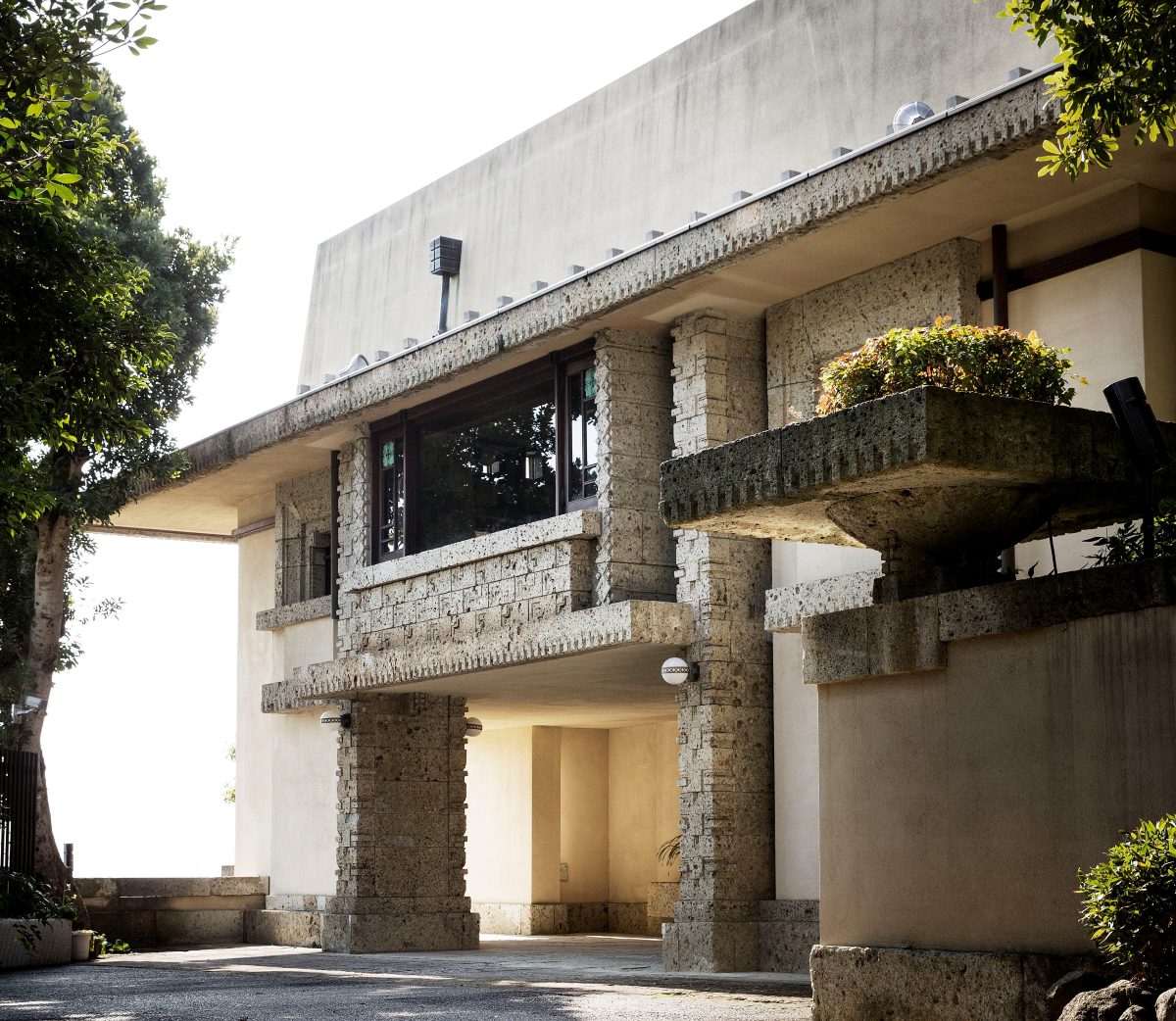 加工のしやすさに加え、自然の趣き深さが感じられる大谷石は、自然をテーマとしたライトの建築思想を表現するのにふさわしい石材だったといえます。もともと大谷石は耐火性に優れていることから、主に蔵や塀・門柱などに使われていましたが建築石材として内外装に多用したのは、ライトが最初とされています。当時(大正時代)もてはやされていた御影石ではなく、手垢のついていない大谷石を採用したところに、ライトのデザインに対するこだわりがあったといえるのではないでしょうか。